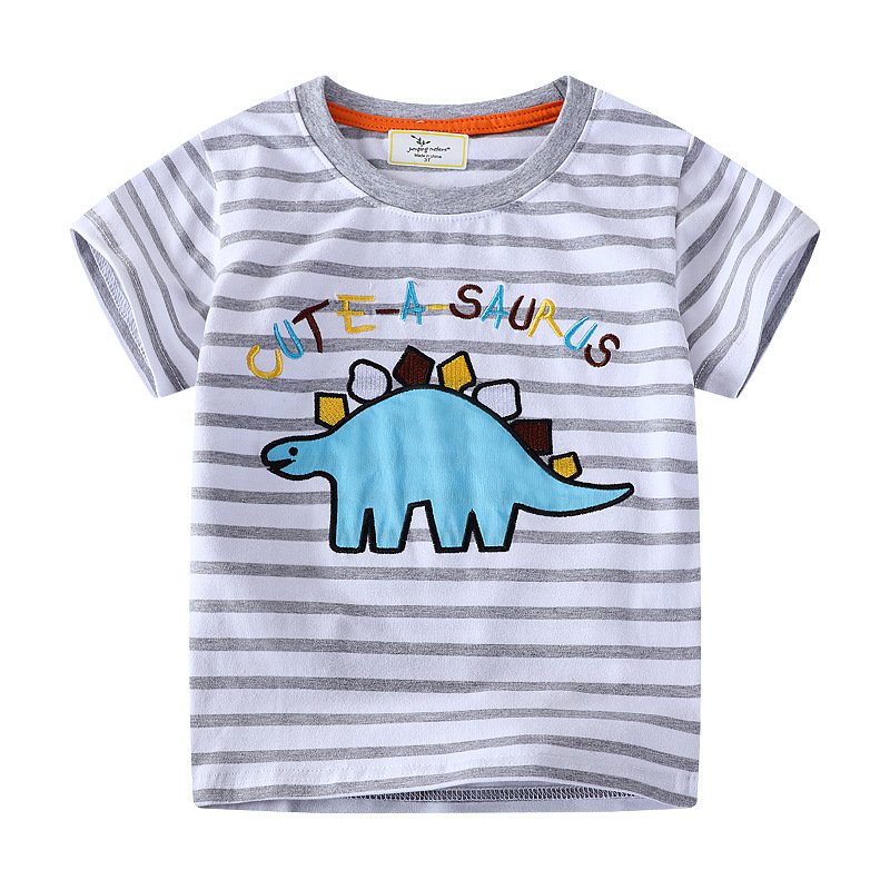 Kids Toddler Boys Casual Cute Dinosaur Stripe Short Sleeve T-Shirt