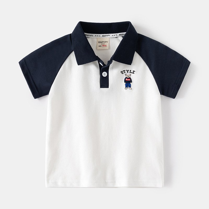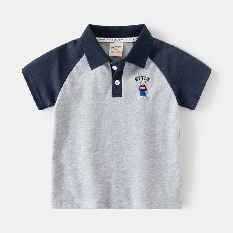 Kids Toddler Boys Casual Cute Embroidery Cartoon Bear Short Sleeve Lapel POLO Shirt
