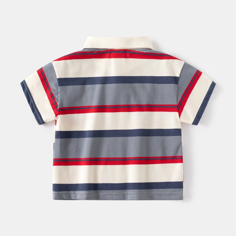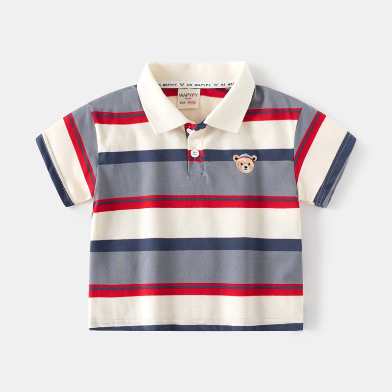 Kids Toddler Boys Casual Cute Embroidery Cartoon Bear Stripe Short Sleeve Lapel POLO Shirt