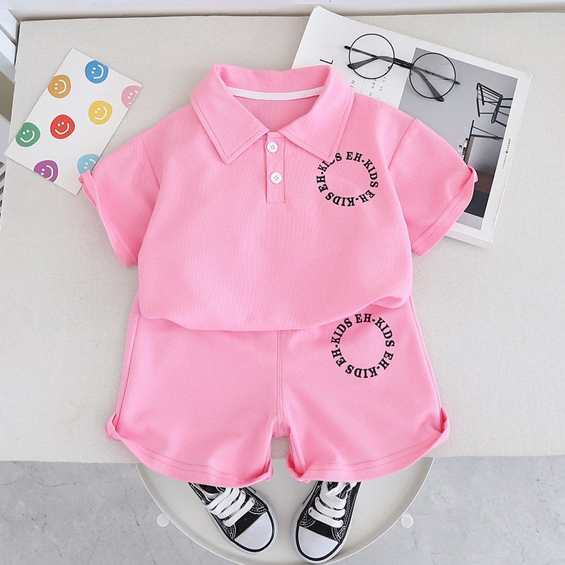 • Solid Polo Short Sleeve Suit Pink – 2Y (100)