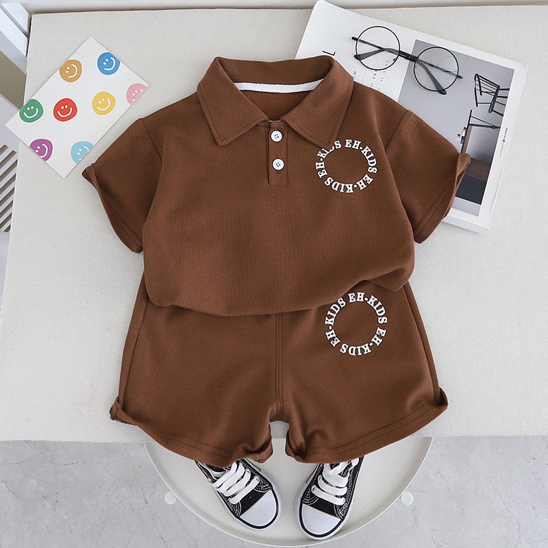 • Solid Polo Short Sleeve Suit (Brown) – 4Y (120)