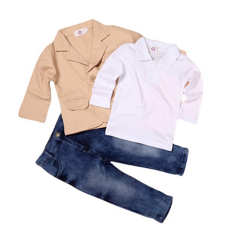 Kids Toddler Boys Casual Long Sleeve Shirt Coat Jeans Three-Piece Sets