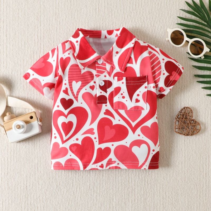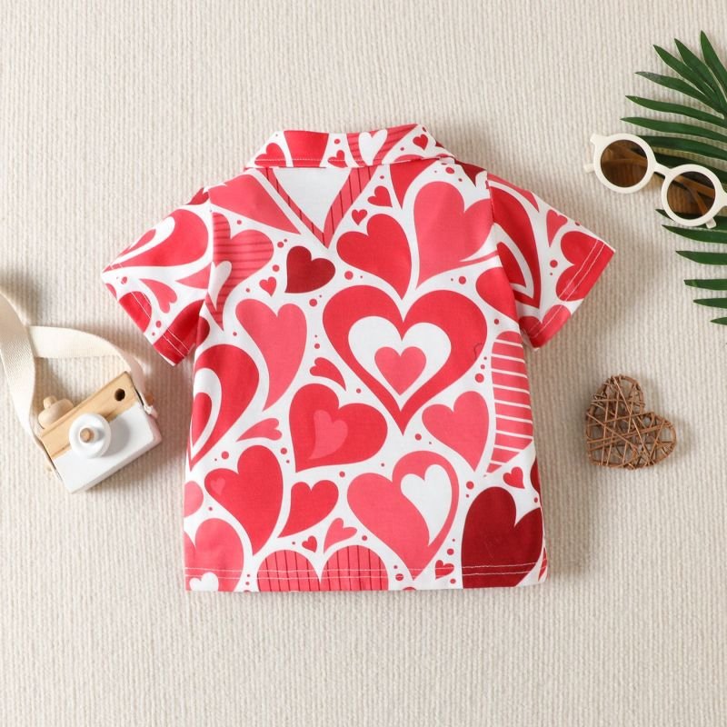 Kids Toddler Boys Casual Love Print Short Sleeve Lapel Shirt