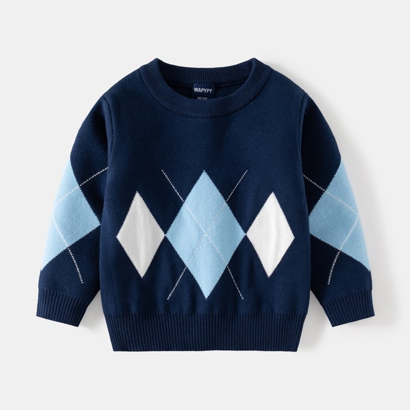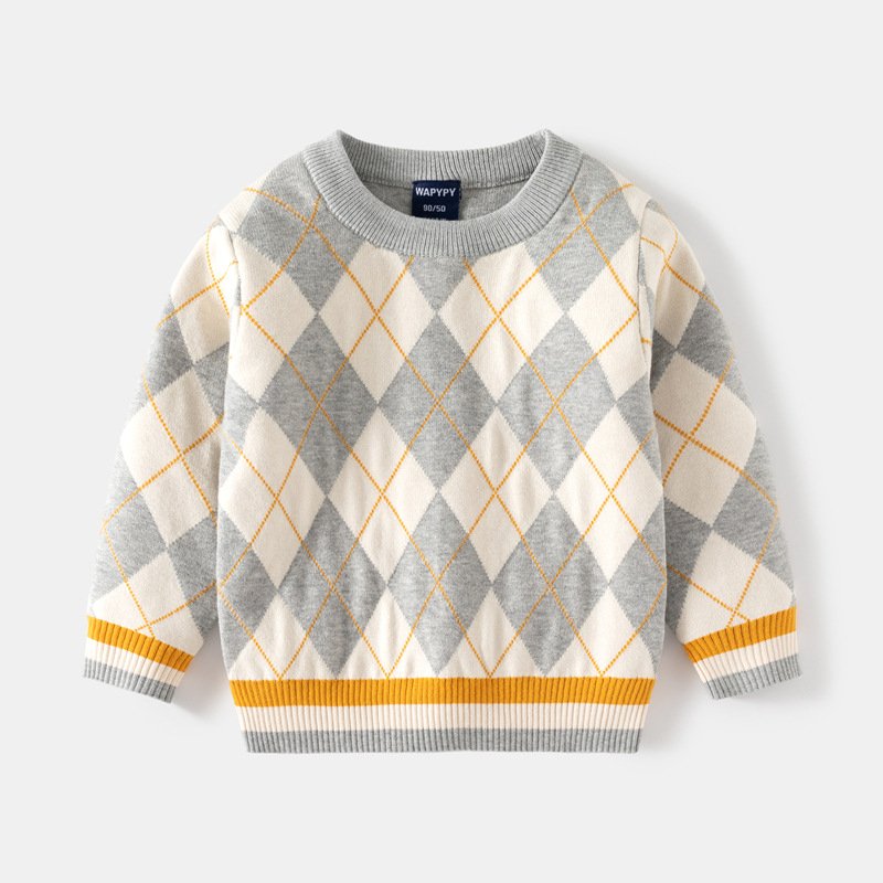 Kids Toddler Boys Fall Winter Casual Cute Plaid Long Sleeve Knitwear Sweater