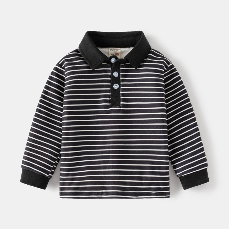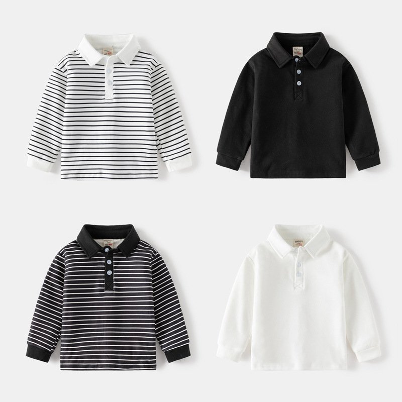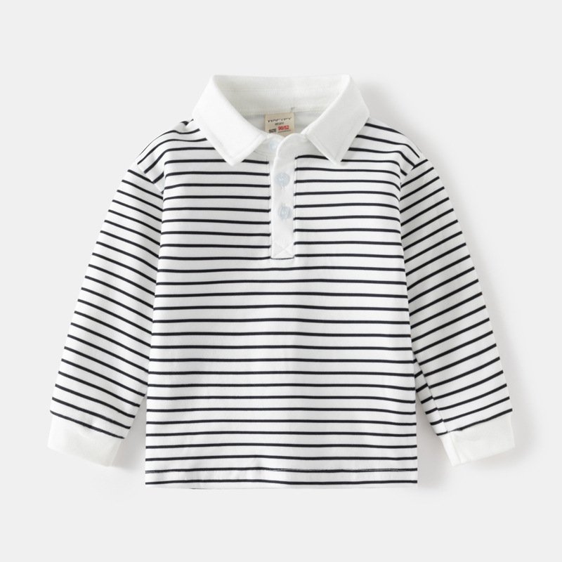 Kids Toddler Boys Fashion Casual Basic Stripe Print Long Sleeve Lapel POLO Shirt