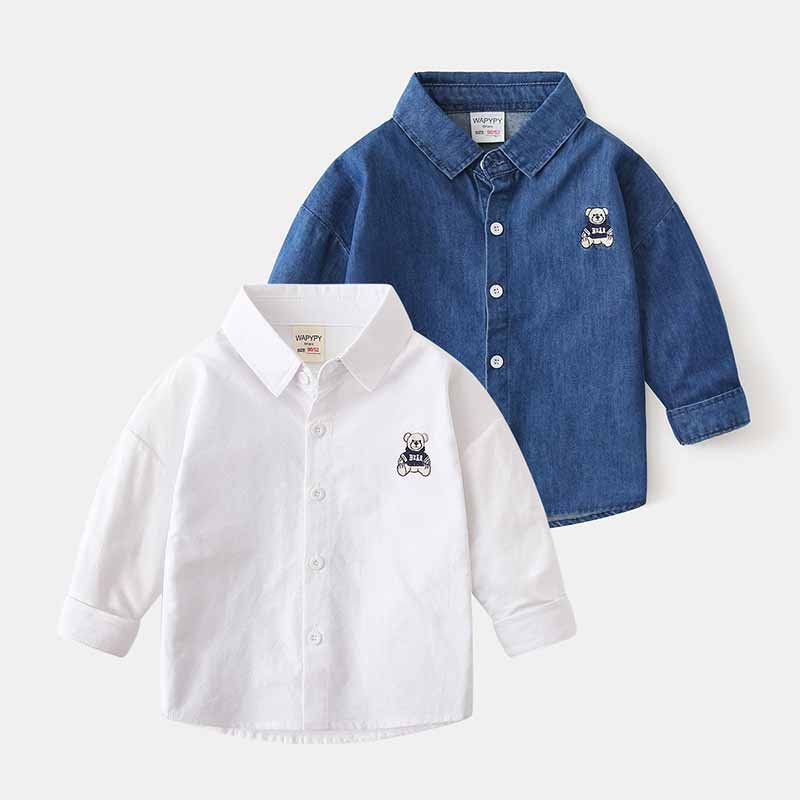 Kids Toddler Boys Fashion Casual Cartoon Embroidery Long Sleeve Lapel Denim Shirt