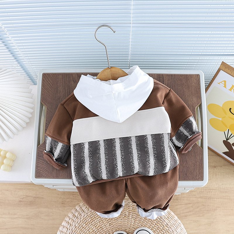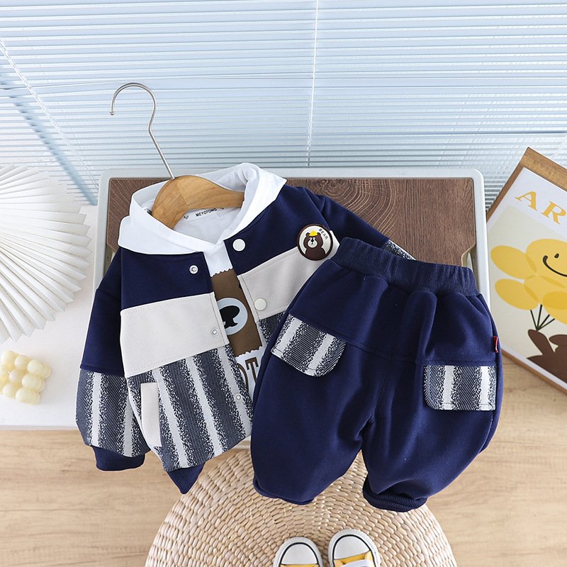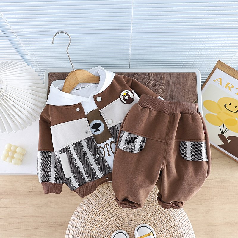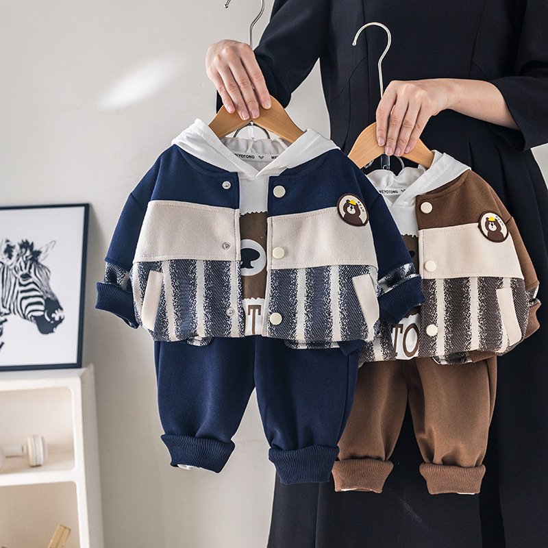 Kids Toddler Boys Fashion Casual Cartoon Print Long Sleeve Hooded T-Shirt Jacket Trousers 3 Piece Set