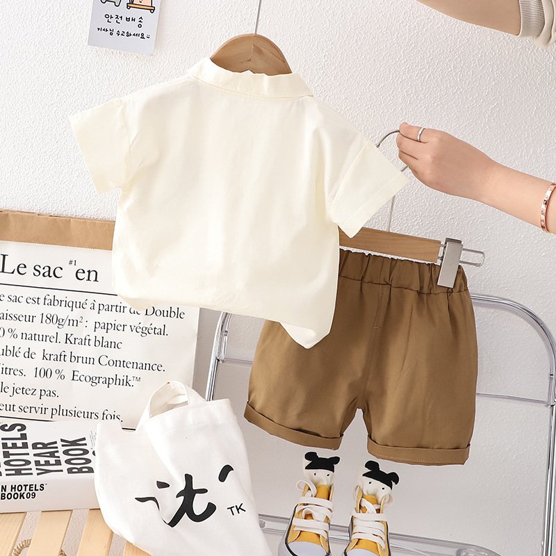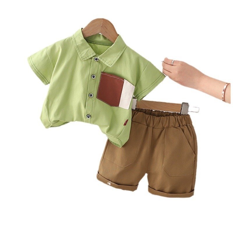 Kids Toddler Boys Fashion Casual Colorblock Short Sleeve Lapel Shirt Shorts Set