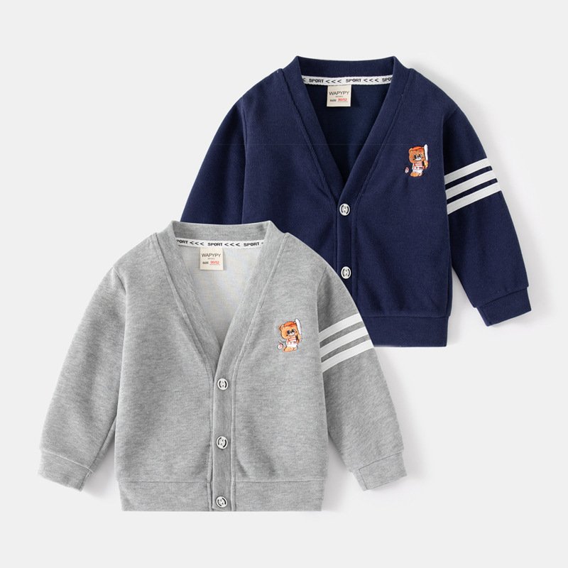 Kids Toddler Boys Fashion Casual Embroidery Cartoon Pattern Long Sleeve V Neck Coat