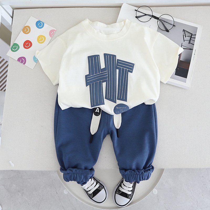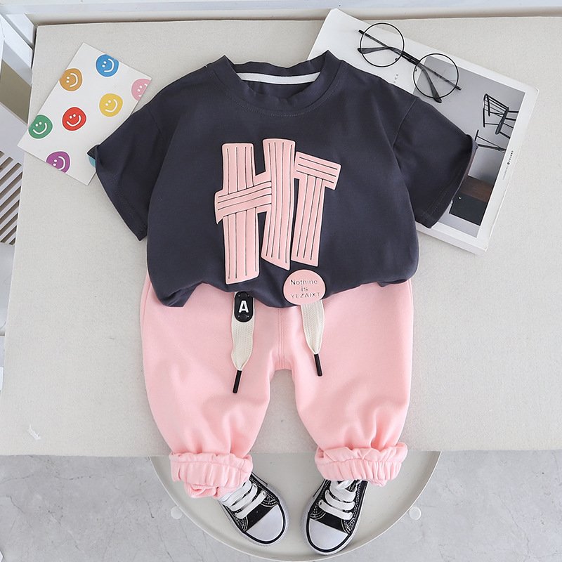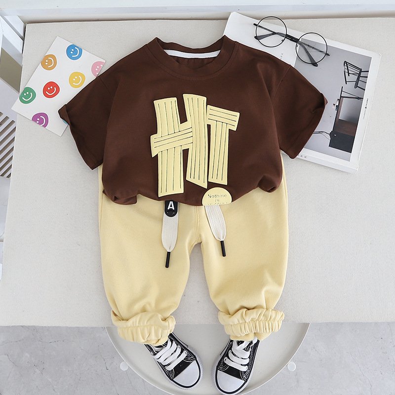 Kids Toddler Boys Fashion Casual Letter Short Sleeve Round Neck T-Shirt Trousers Set