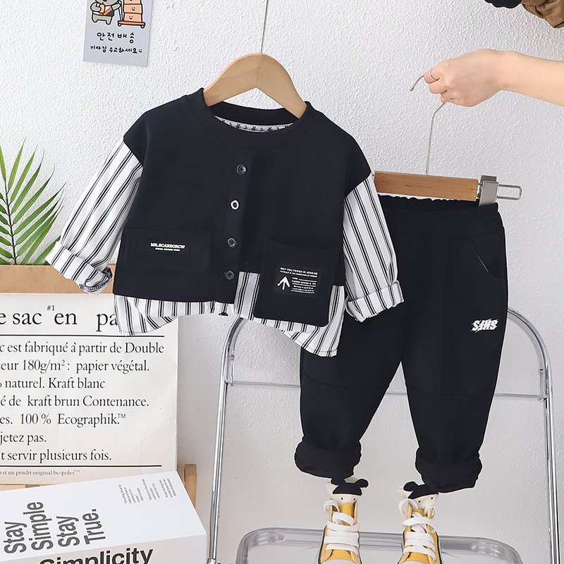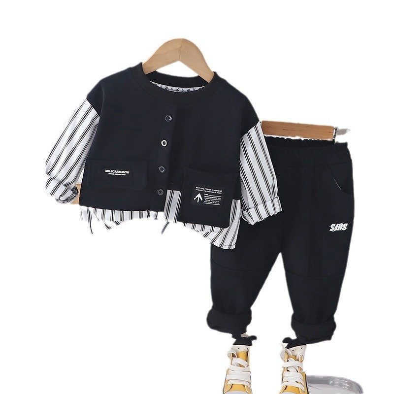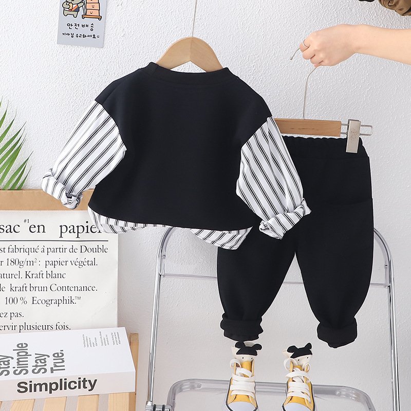 Kids Toddler Boys Fashion Casual Letter Stripe Long Sleeve Round Neck Sweatshirts Trousers Set