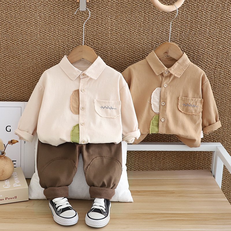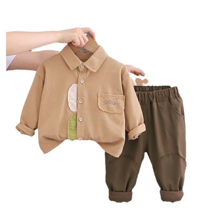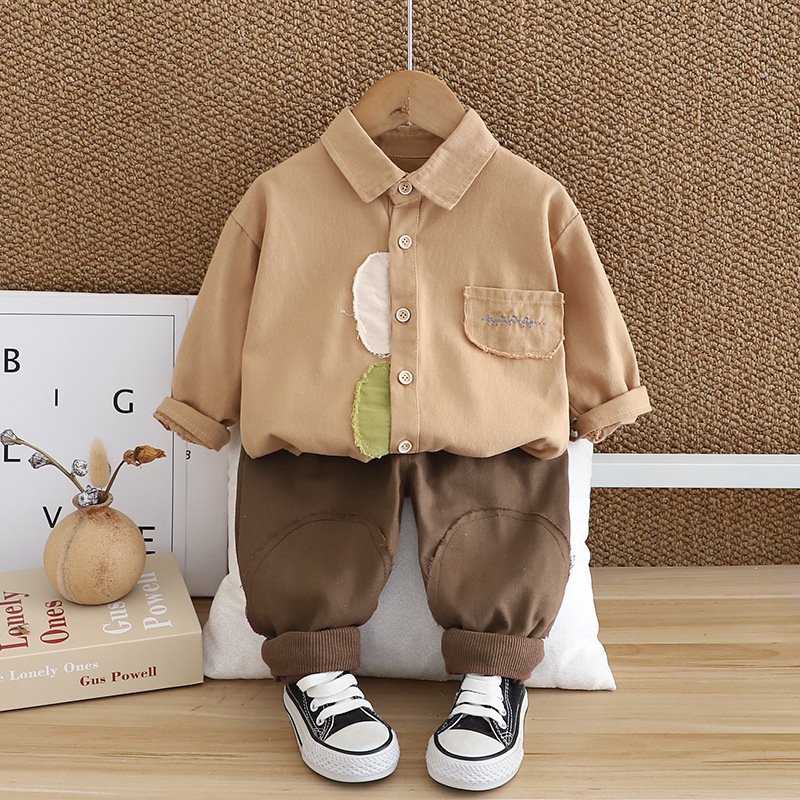 • YL – Patch Embroidery Bag Washed Shirt Two – PCS – Coffee – 18M (90)