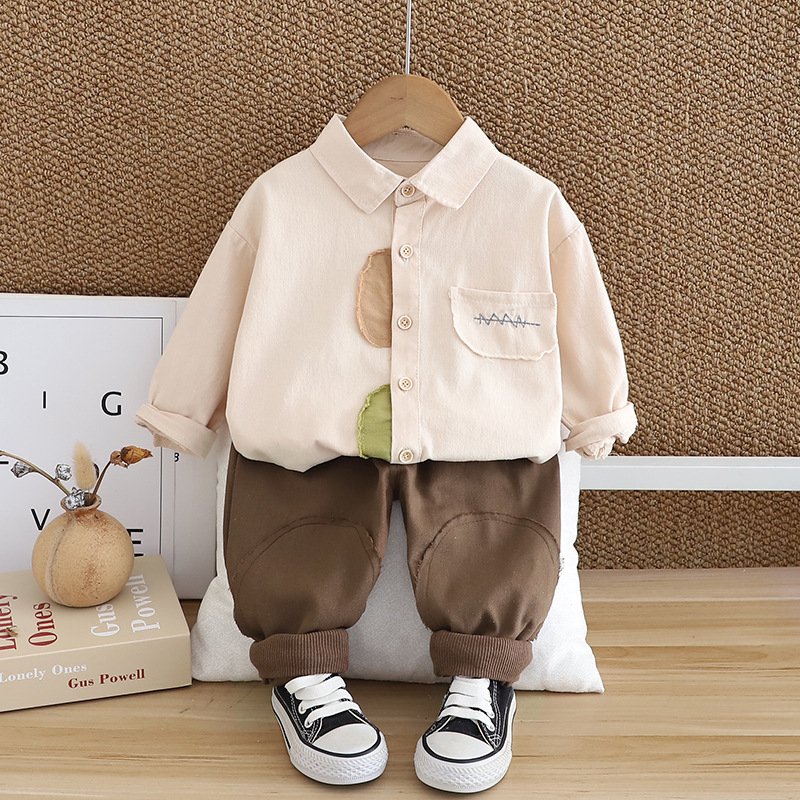 • YL – Patch Embroidery Bag Washed Shirt Two – PCS – Beige – 18M (90)