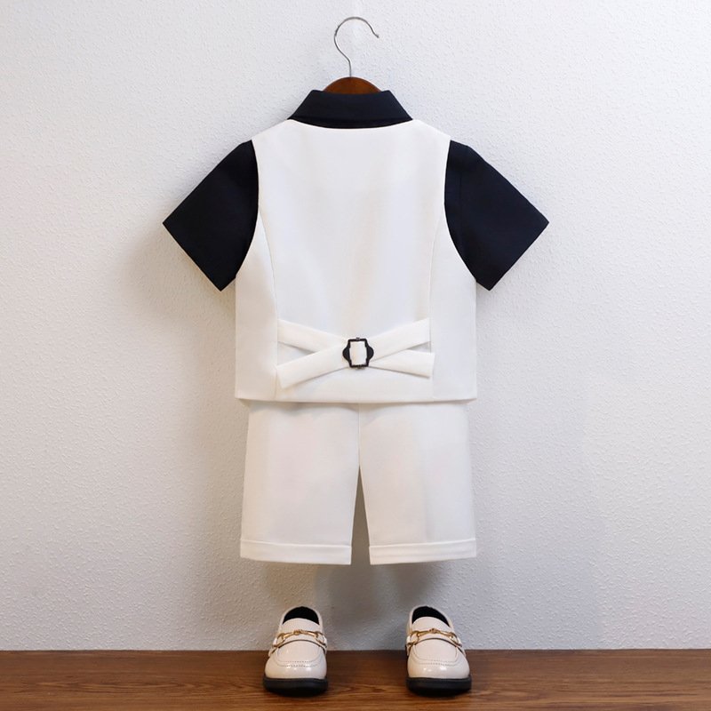 • White 5 – PCS Set (Black Shirt Waistcoat Shorts Bow Tie Corsage) – 18M (90)
