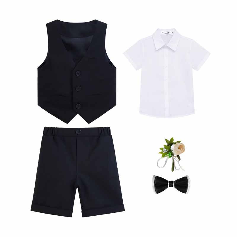 • Black 5 – PCS Set (White Shirt Waistcoat Shorts Bow Tie Corsage) – 2Y (100)