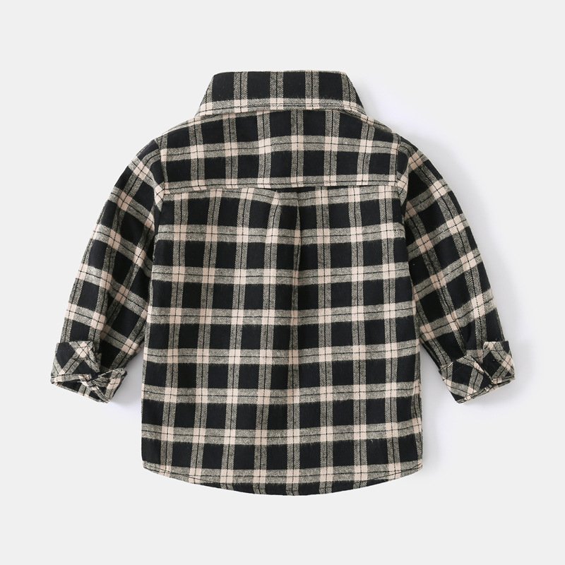Kids Toddler Boys Fashion Casual Playd Print Long Sleeve Lapel Shirt