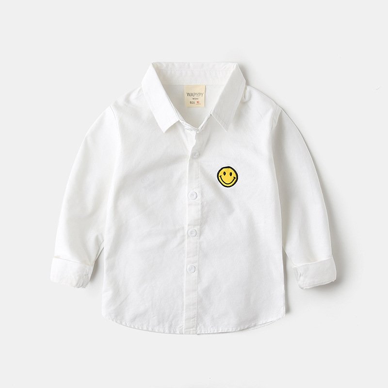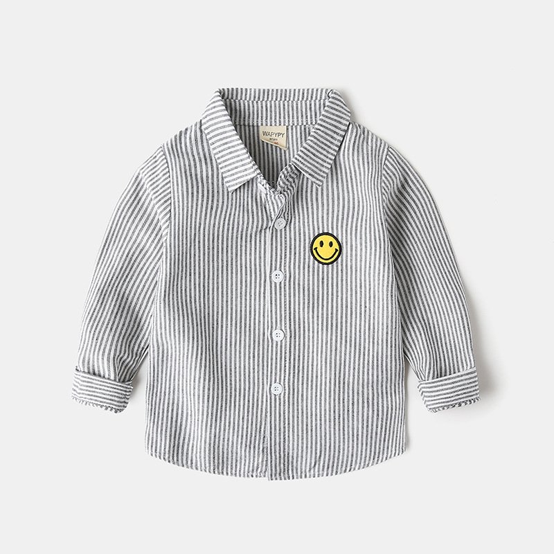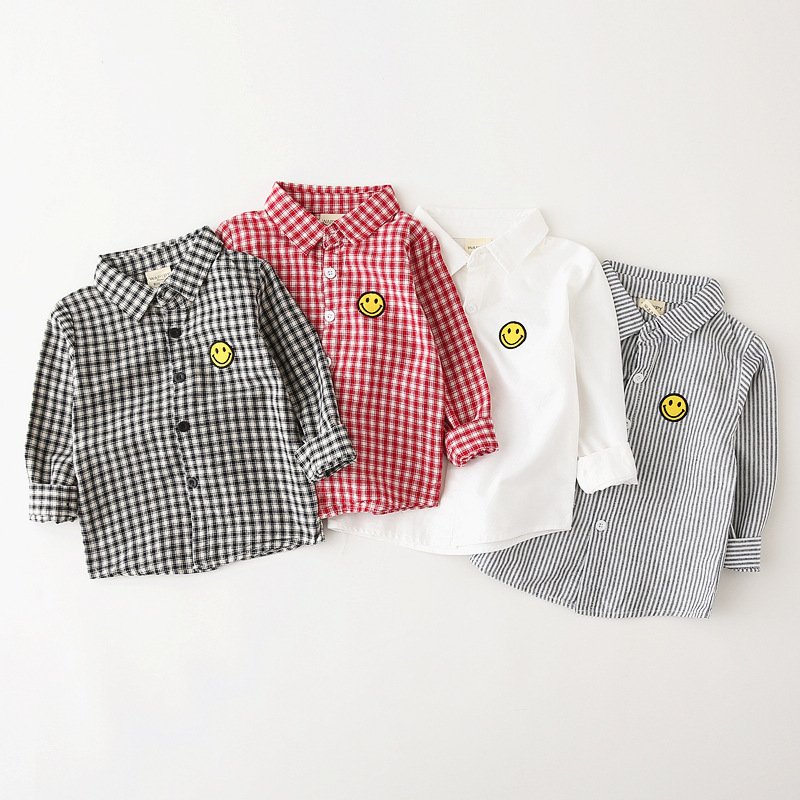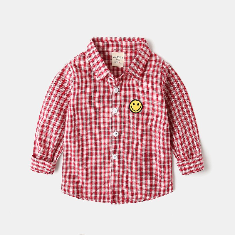 Kids Toddler Boys Fashion Casual Playd Smiley Print Long Sleeve Lapel Shirt