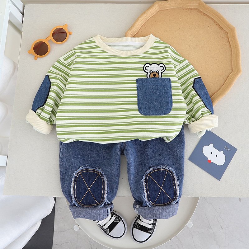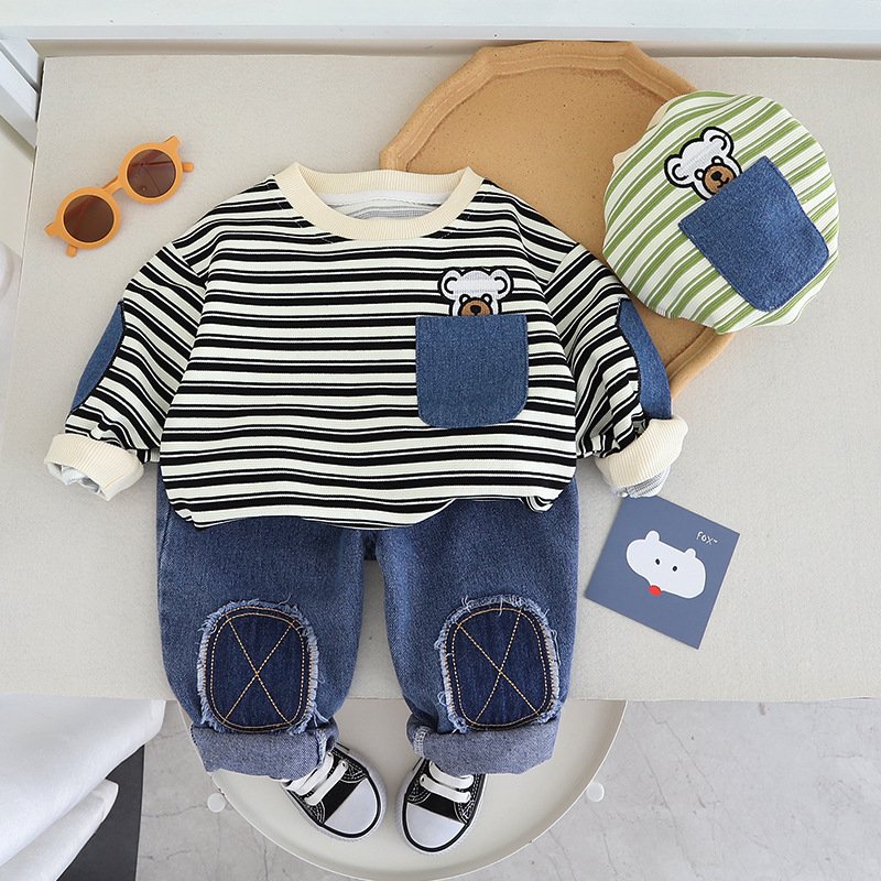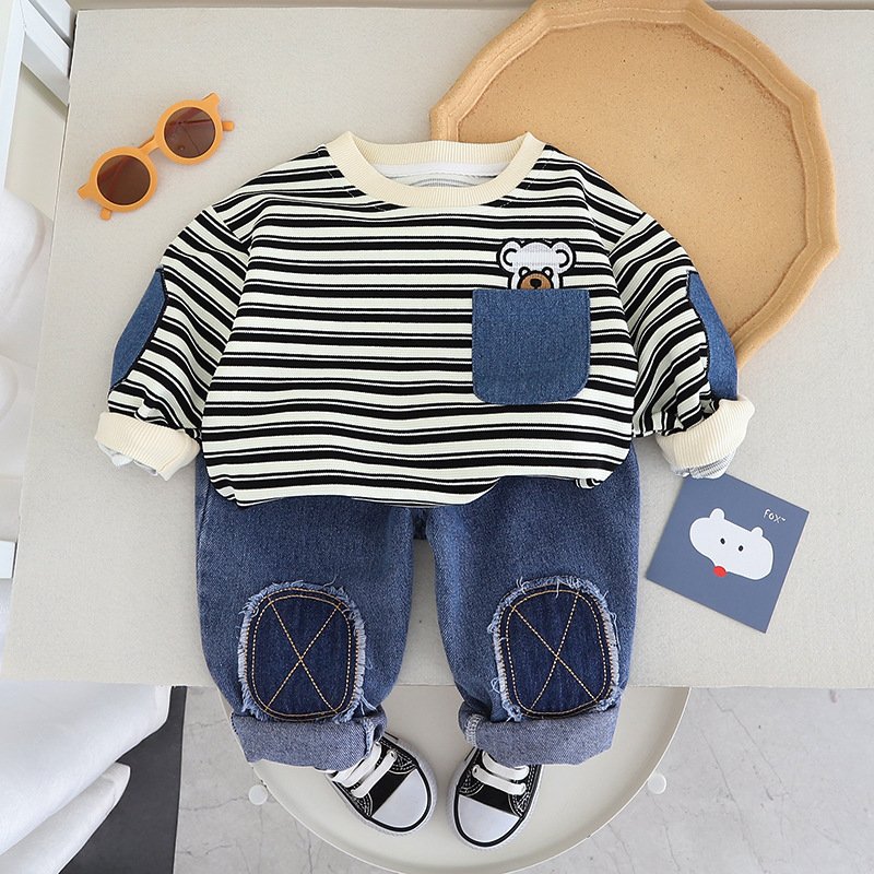 Kids Toddler Boys Fashion Casual Stripe Cartoon Print Long Sleeve Sweatshirts Jeans Set