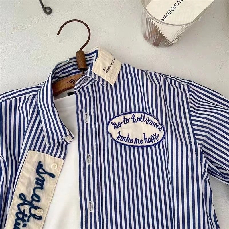 Kids Toddler Boys Fashion Casual Stripe Letter Long Sleeve Lapel Shirt
