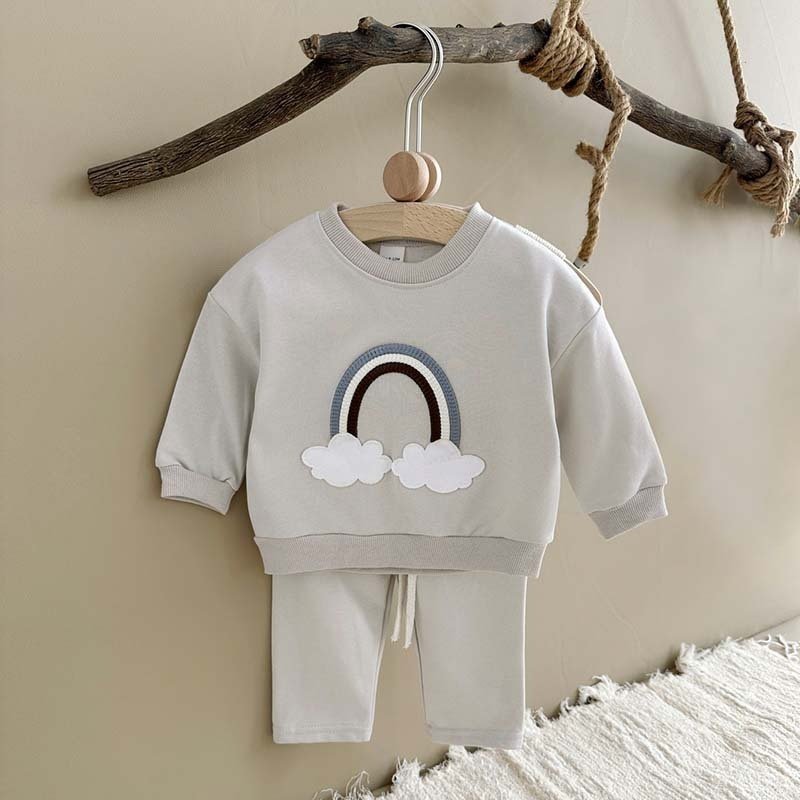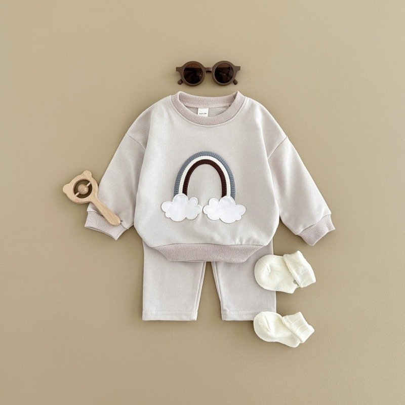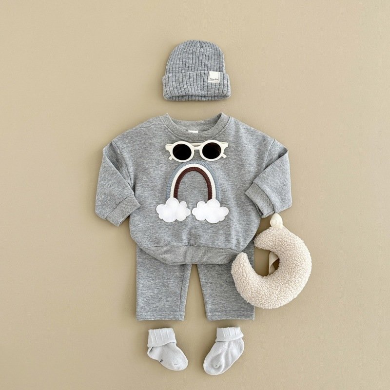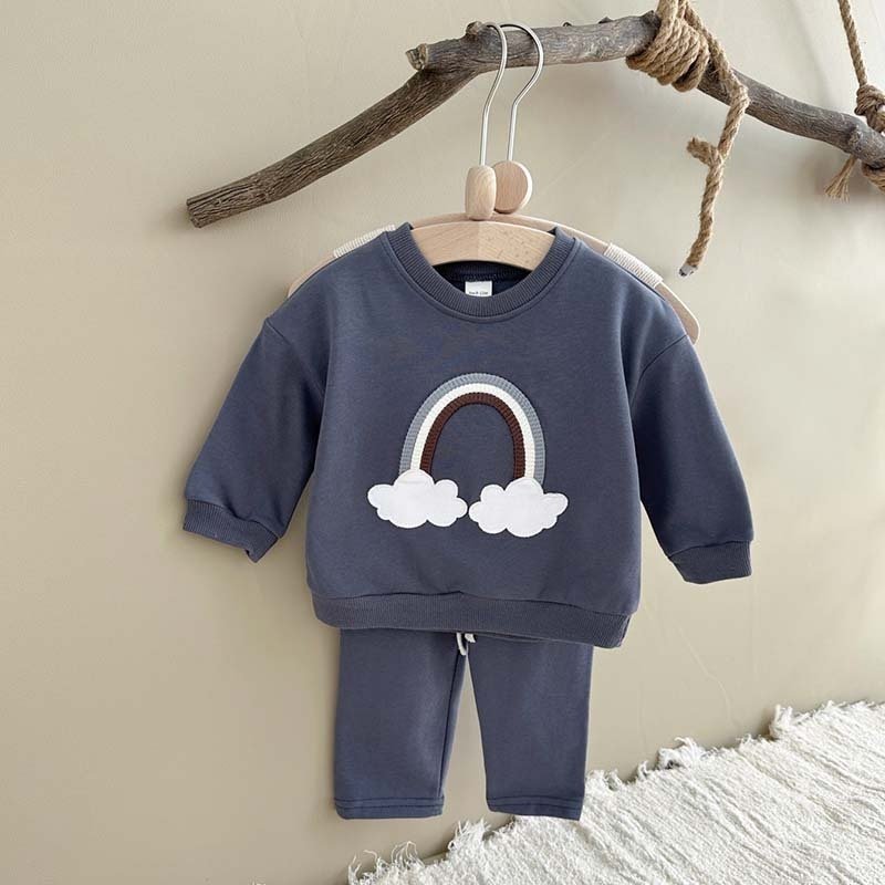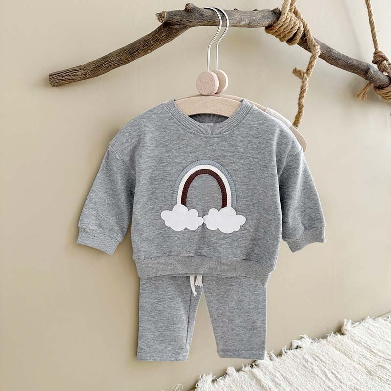 Kids Toddler Boys Girls Autumn Winter Casual Cute Rainbow Stripe Print Long Sleeve Round Neck Sweatshirts Pants Long Set