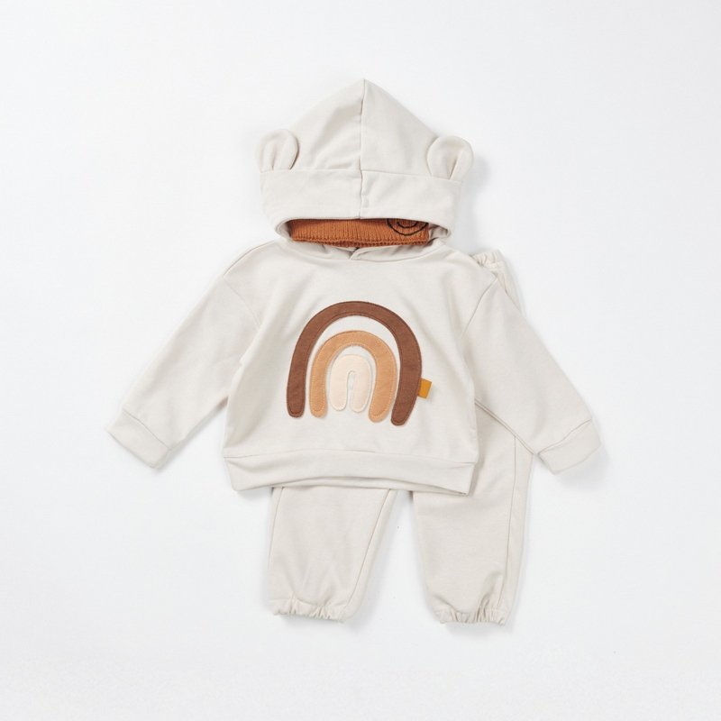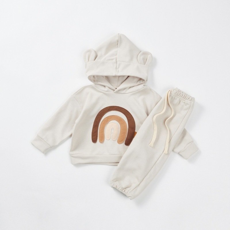 Kids Toddler Boys Girls Casual Cute Basic Rainbow Stripe Long Sleeve Round Neck Hoodies Pants Sets