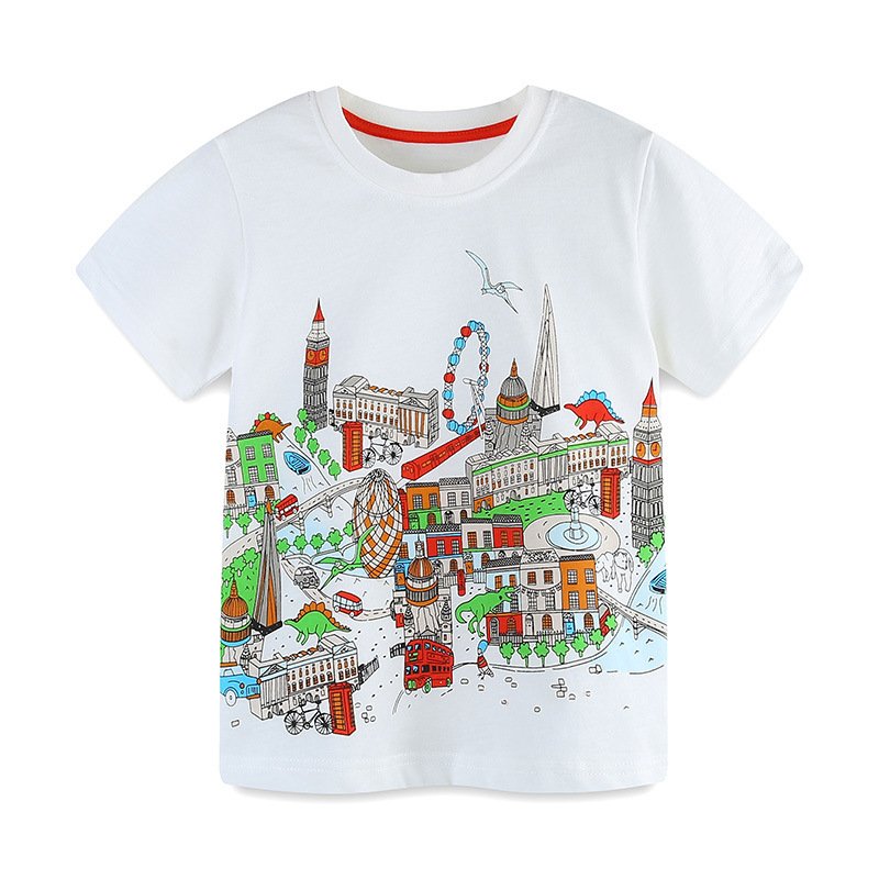 Kids Toddler Boys Girls Casual Cute Cartoon Print Short Sleeve Round Neck T-Shirt