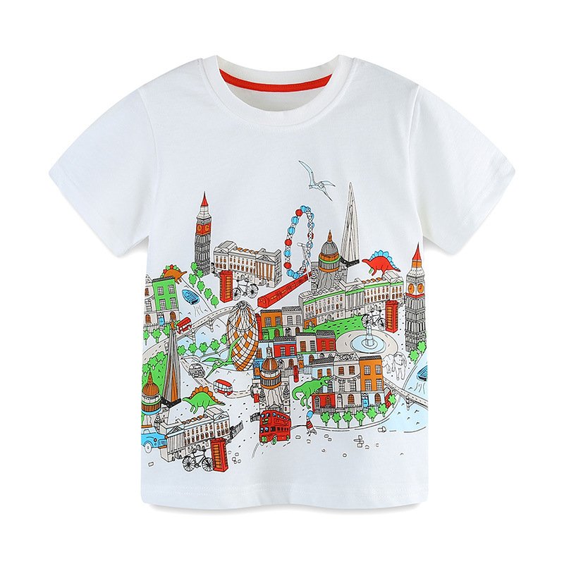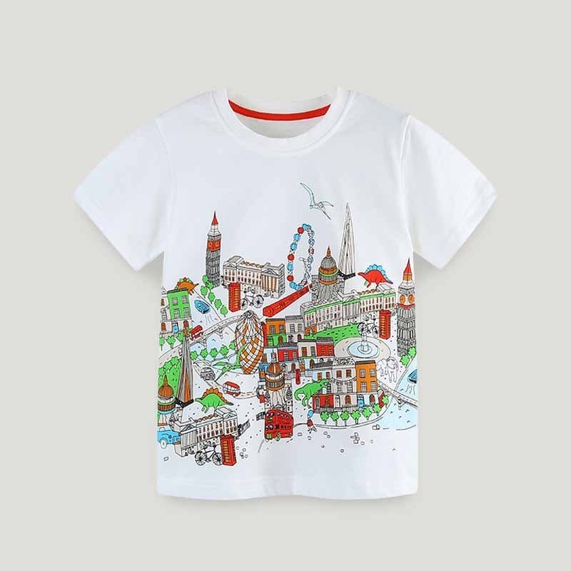 Kids Toddler Boys Girls Casual Cute Cartoon Print Short Sleeve Round Neck T-Shirt