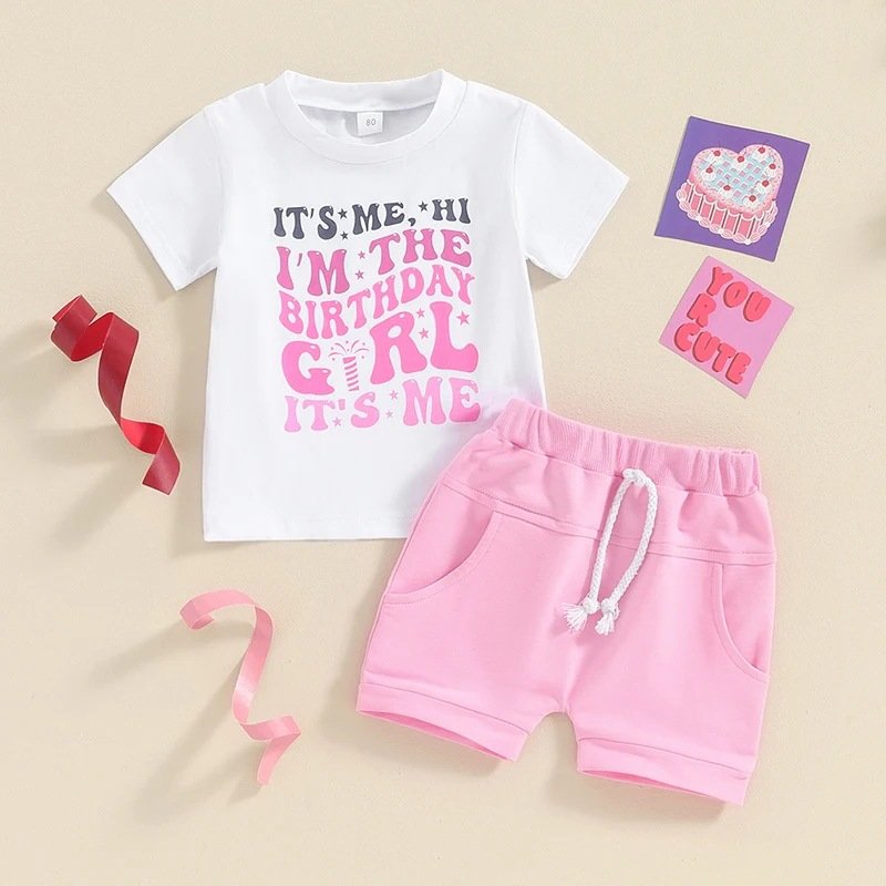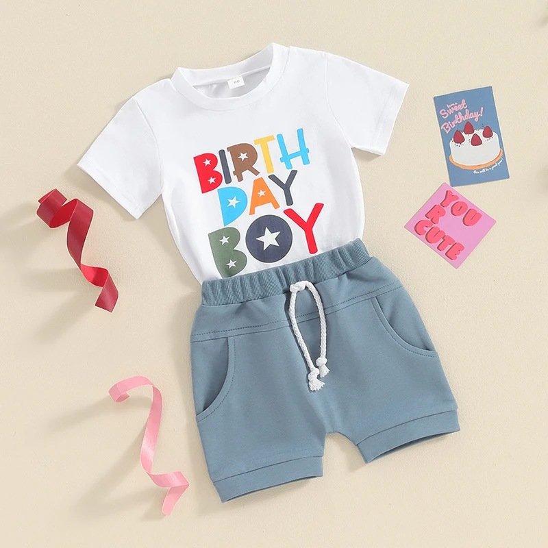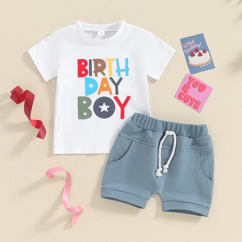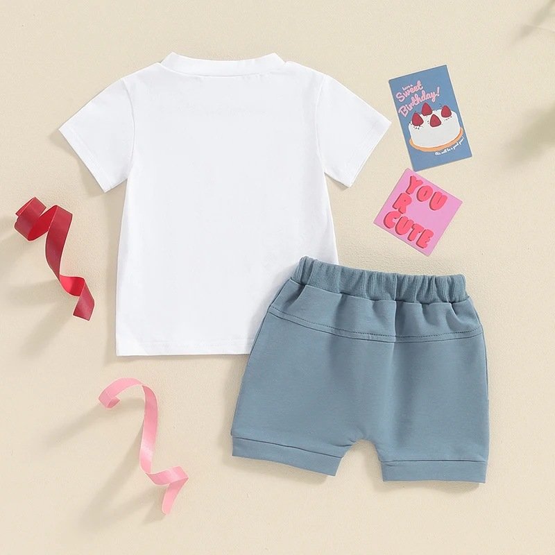 Kids Toddler Boys Girls Casual Cute Letter Print Short Sleeve T-Shirt Shorts Set