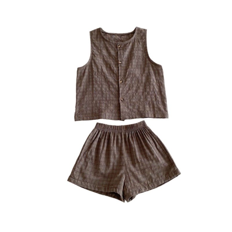 Kids Toddler Boys Girls Casual Cute Playid Print Vest Shorts Set