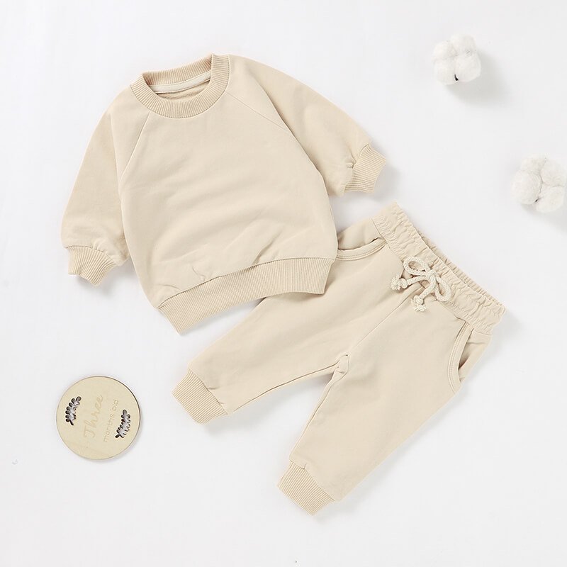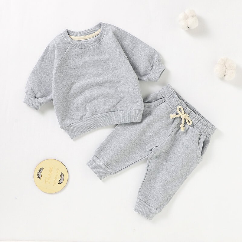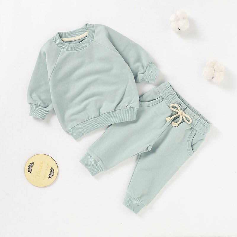Kids Toddler Boys Girls Casual Cute Solid Color Long Sleeve Sweatshirts Trousers Sets
