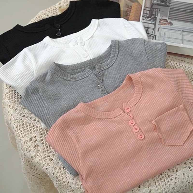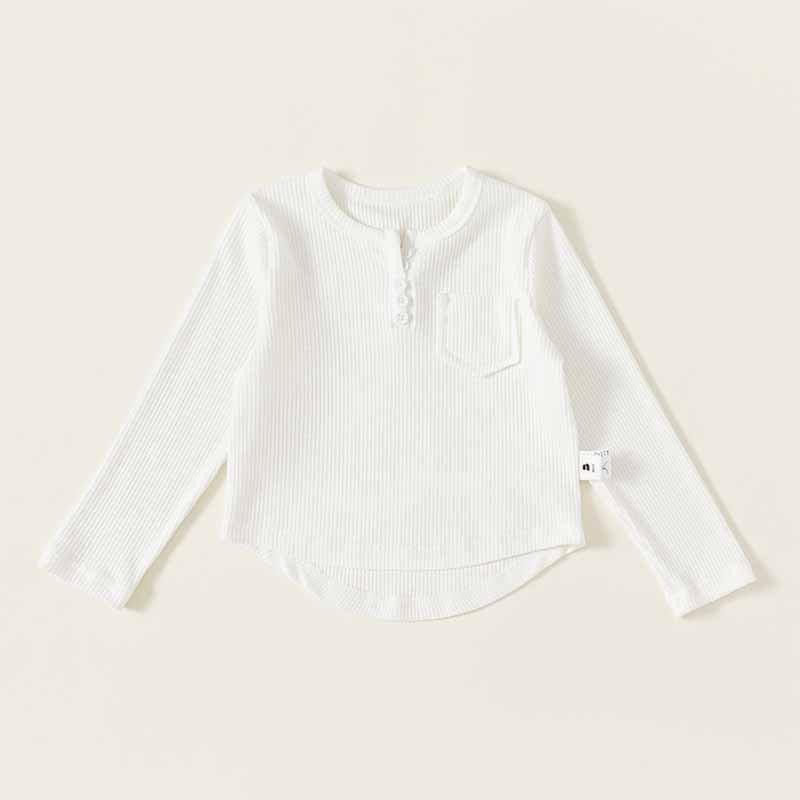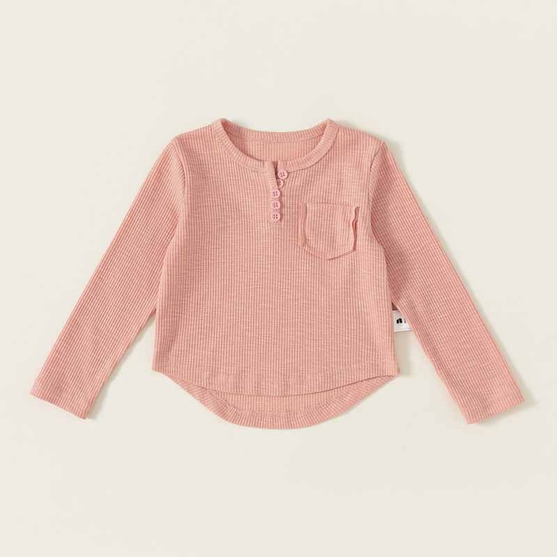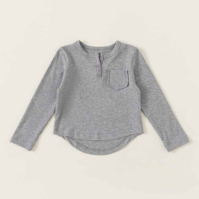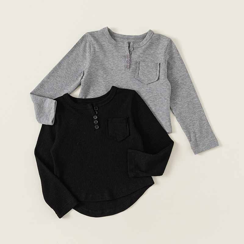 Kids Toddler Boys Girls Casual Cute Solid Color Rib Knit Long Sleeve T-Shirt