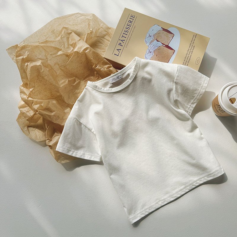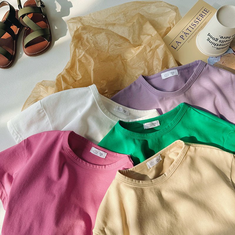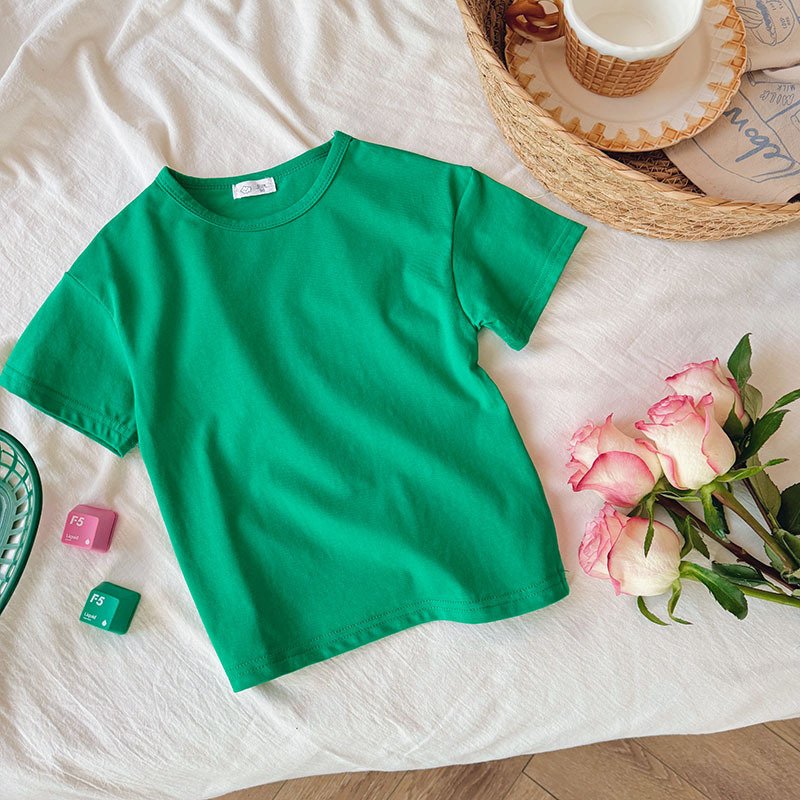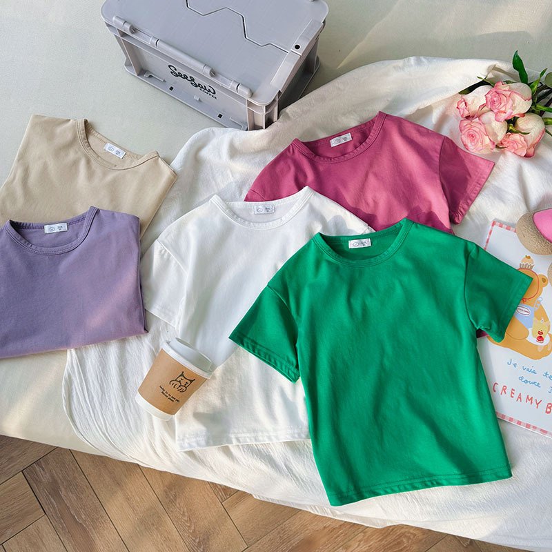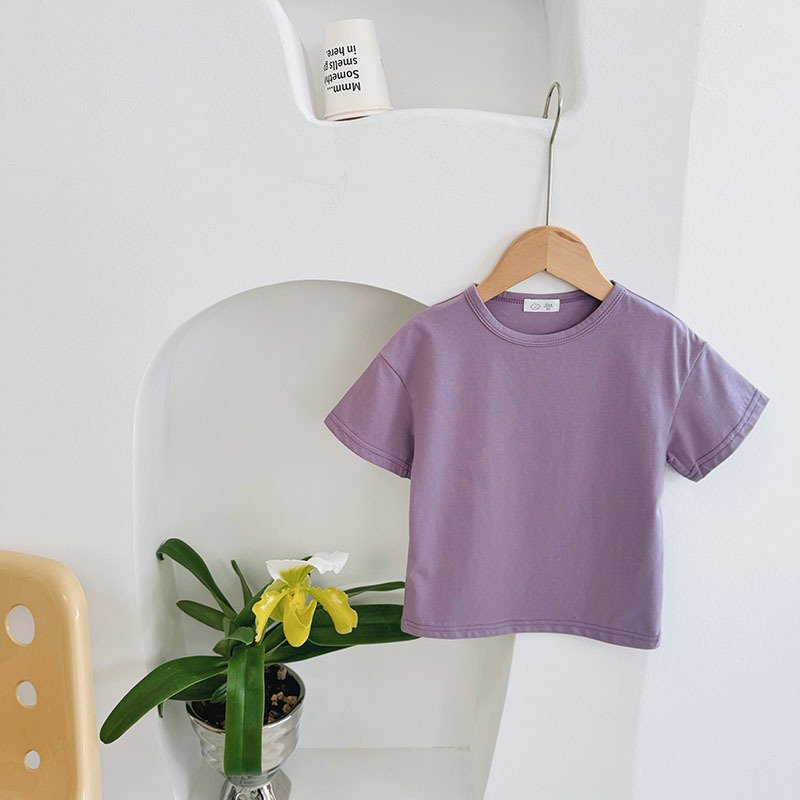 Kids Toddler Boys Girls Casual Cute Solid Color Short Sleeve Round Neck T-Shirt