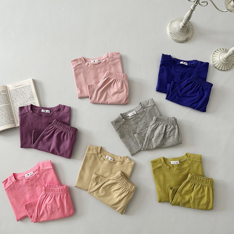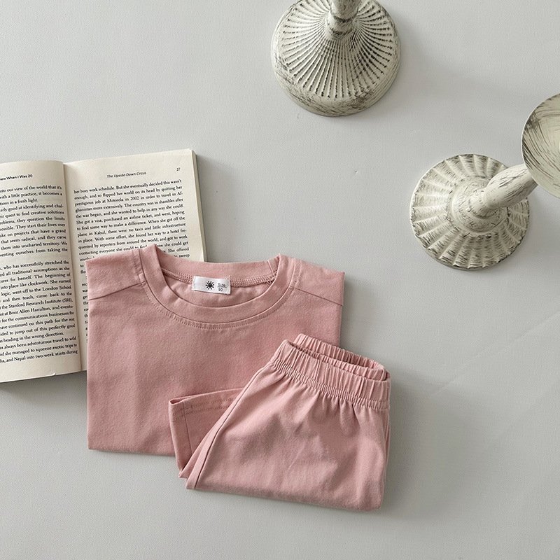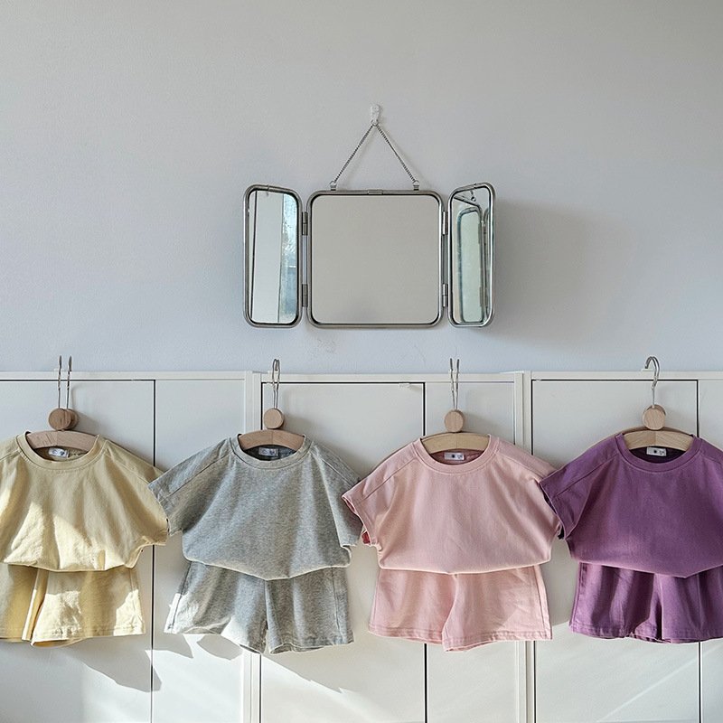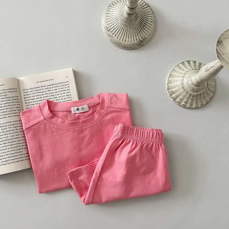 Kids Toddler Boys Girls Casual Cute Solid Color Short Sleeve T-Shirt Shorts Set