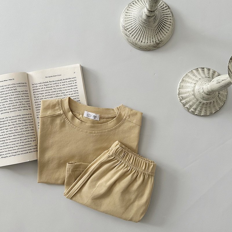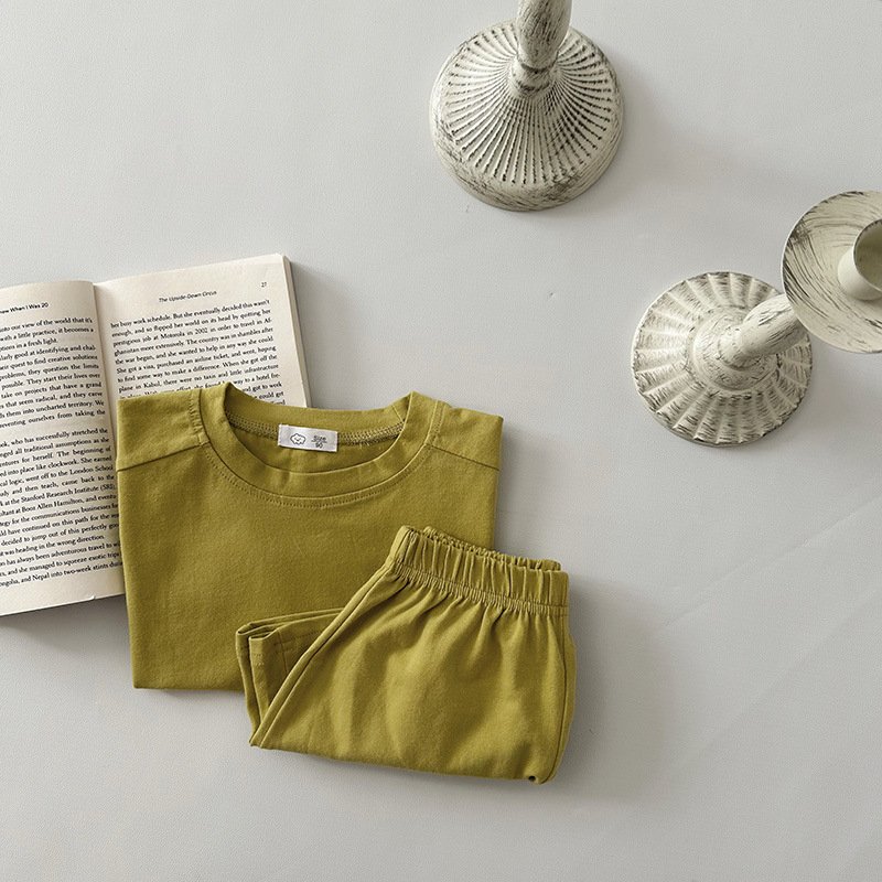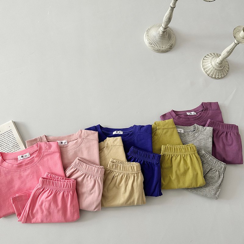 Kids Toddler Boys Girls Casual Cute Solid Color Short Sleeve T-Shirt Shorts Set