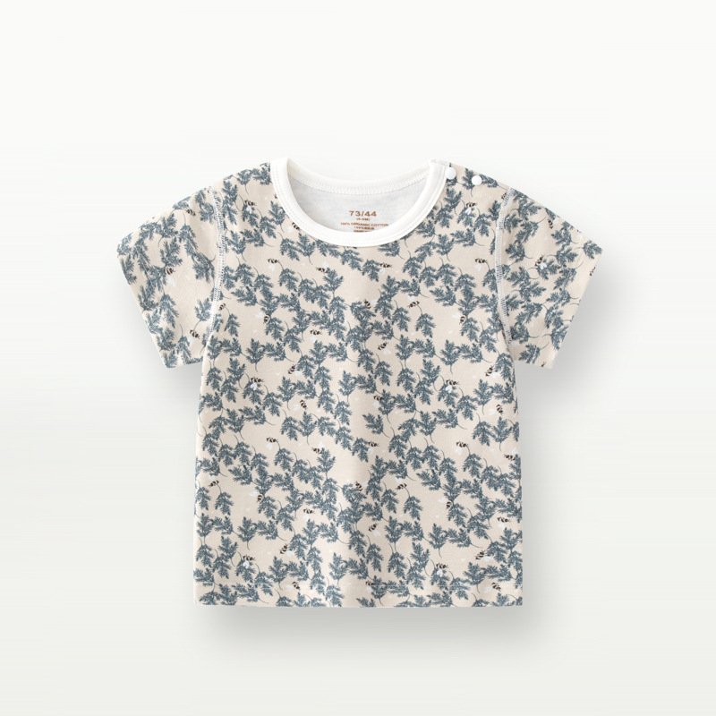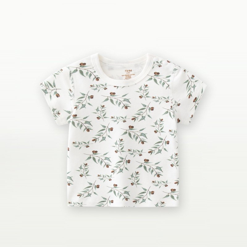Kids Toddler Boys Girls Casual Cute Tiny Flower Print Short Sleeve Round Neck T-Shirt