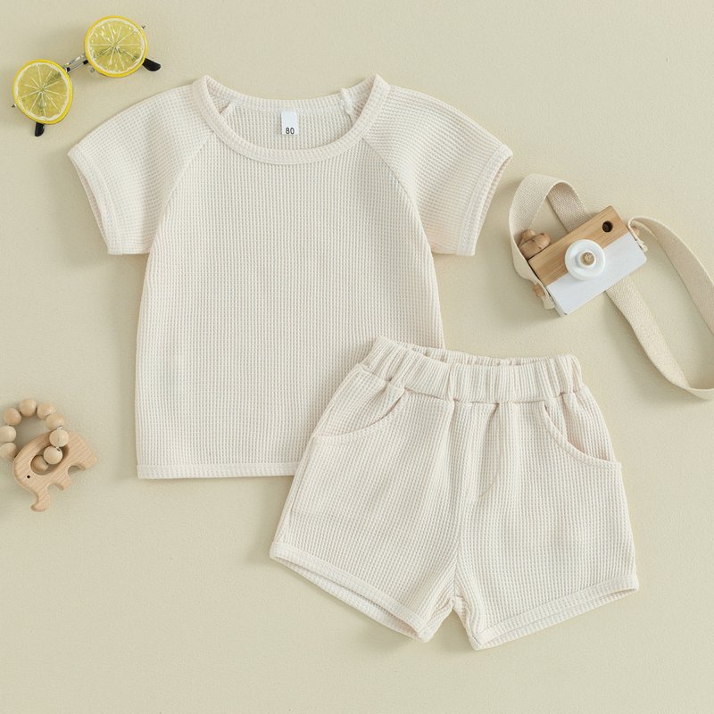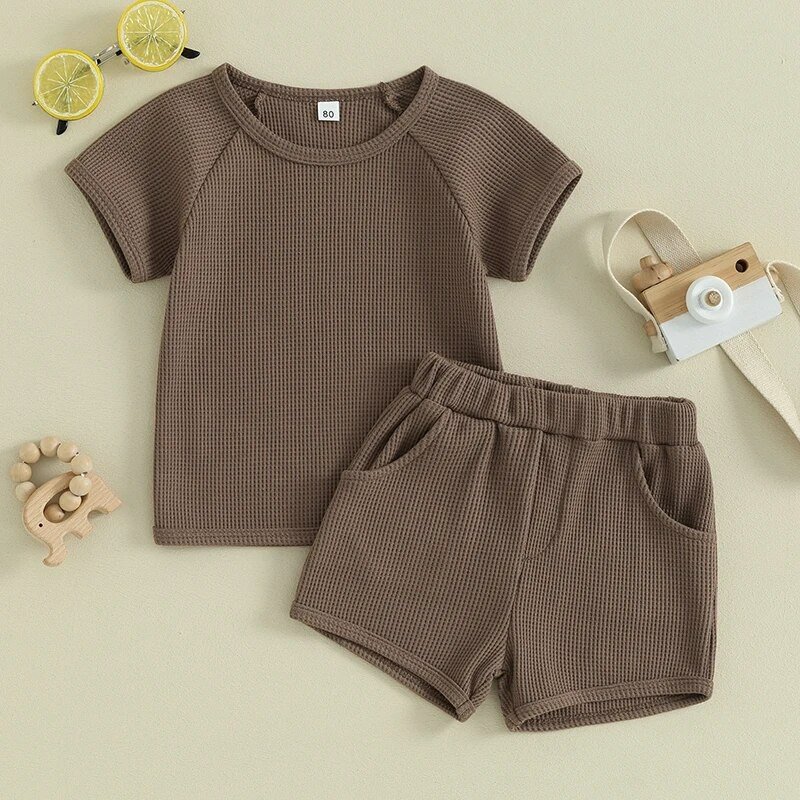 Kids Toddler Boys Girls Casual Cute Waffle Solid Color Short Sleeve T-Shirt Shorts Set