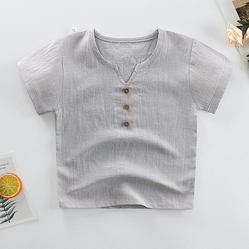 • L Slub Cotton Single T-Shirt – Grey Button – 55 (90)