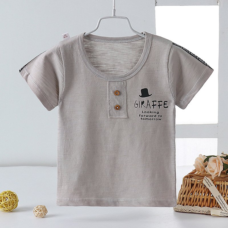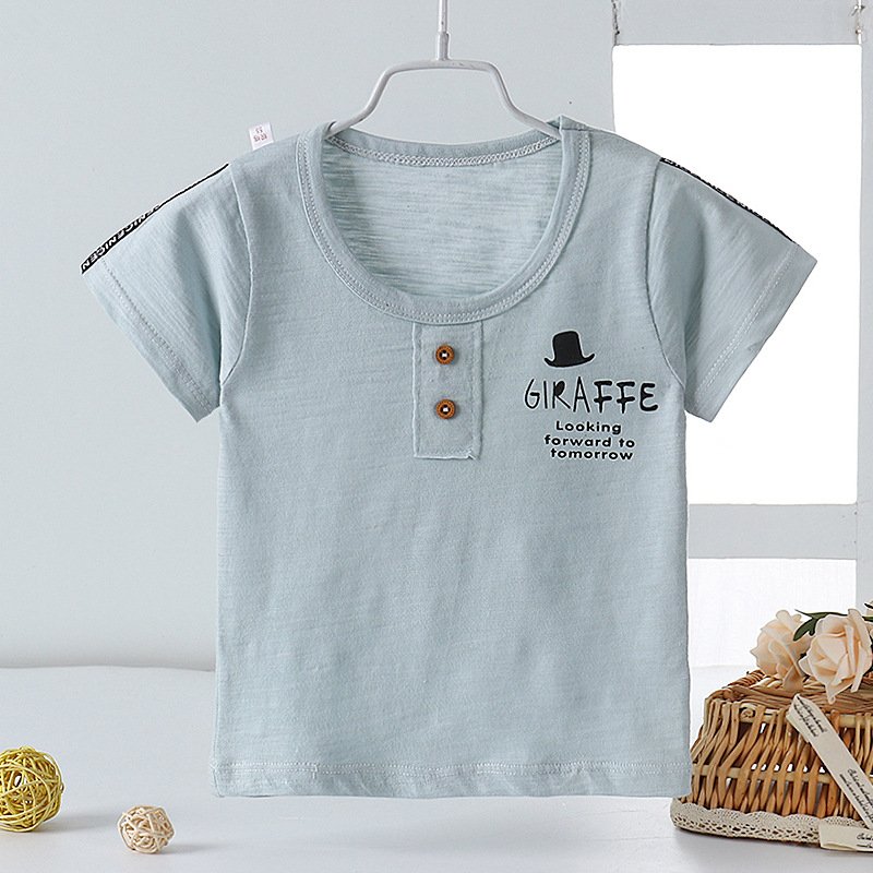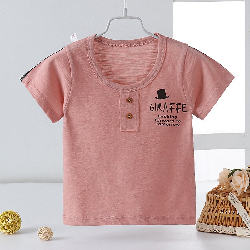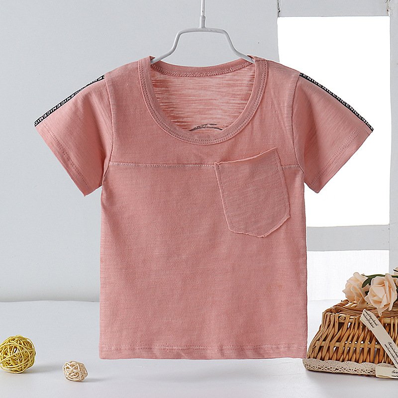 Kids Toddler Boys Girls Casual Solid Color Letter Print Short Sleeve Round Neck T-Shirt