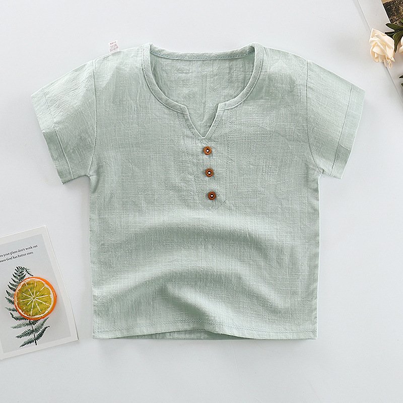 • L Slub Cotton Single T-Shirt – Lt. Green Button – 75 (130)