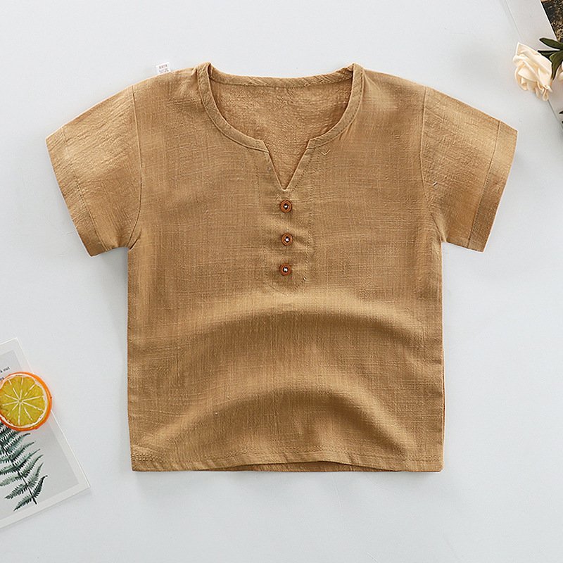 • L Slub Cotton Single T-Shirt – Khaki Button – 75 (130)