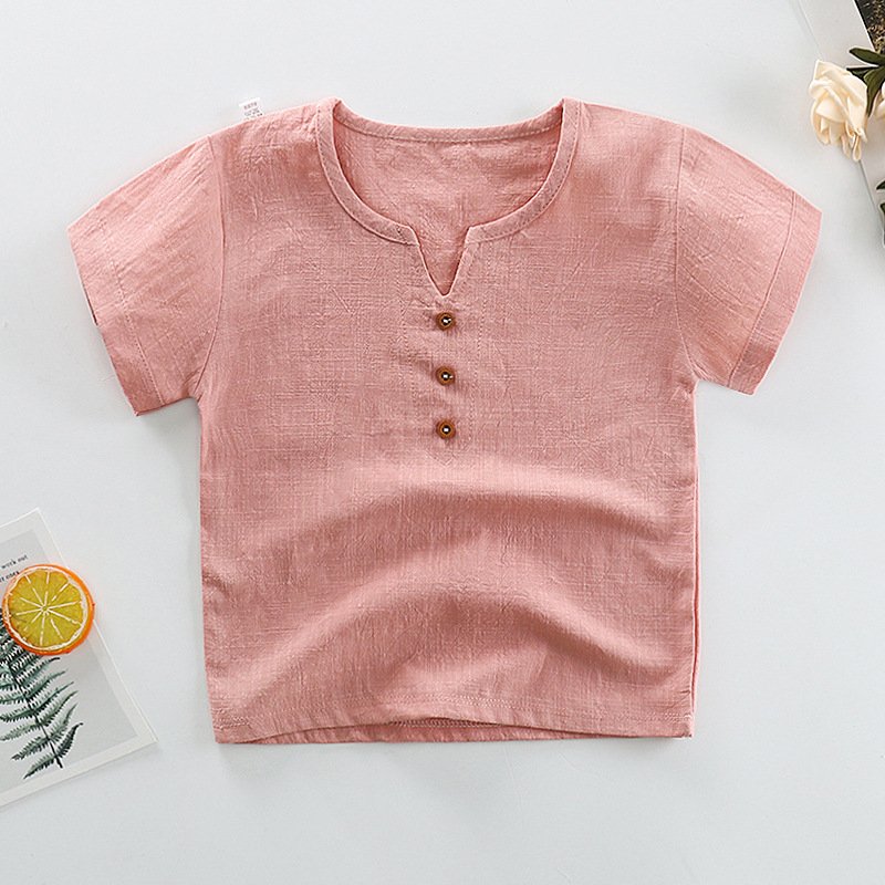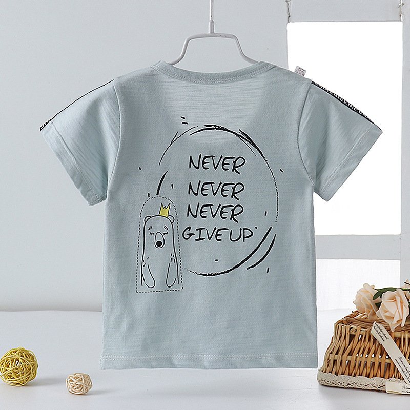 Kids Toddler Boys Girls Casual Solid Color Letter Print Short Sleeve Round Neck T-Shirt