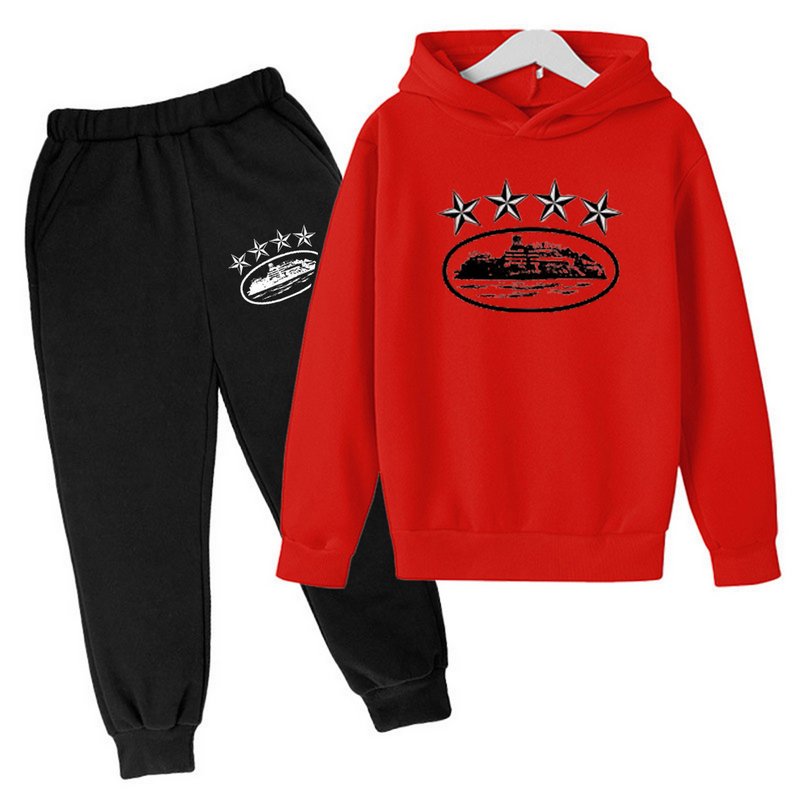 Kids Toddler Boys Girls Casual Sports Print Long Sleeve Hoodies Trousers Sets