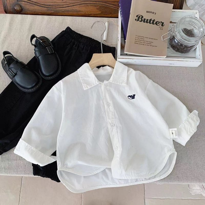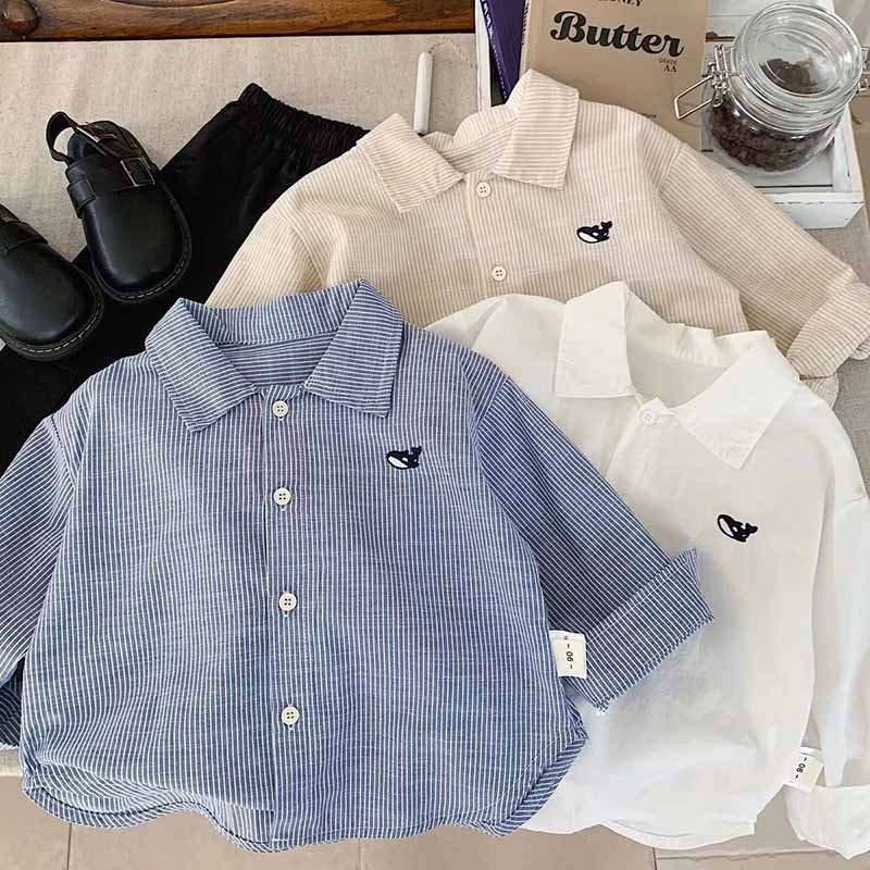 Kids Toddler Boys Girls Casual Versatile Long Sleeve Lapel Shirt