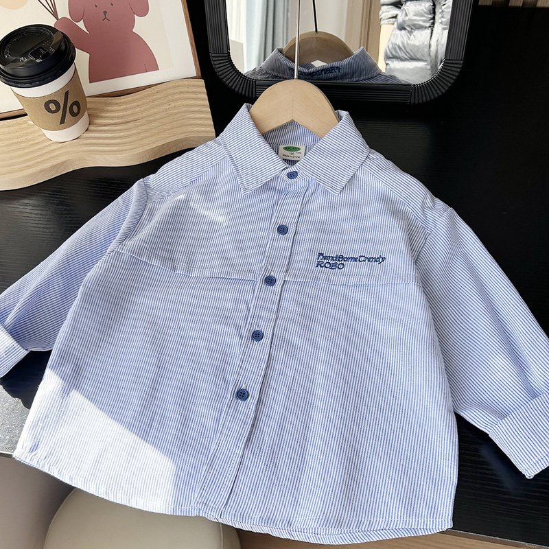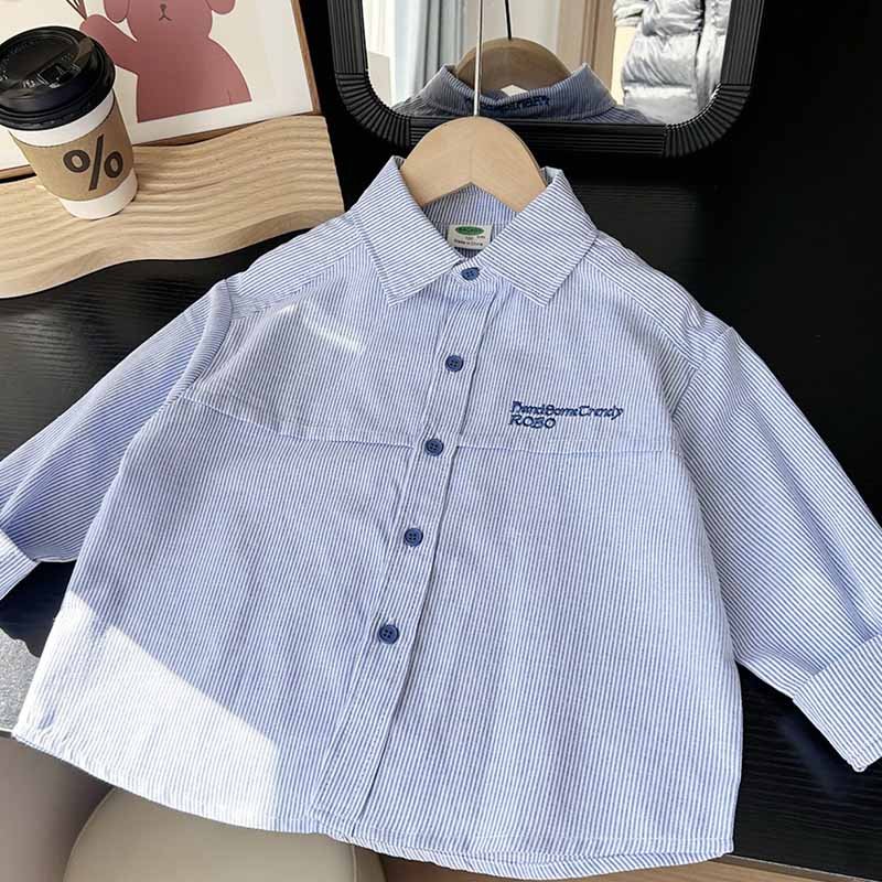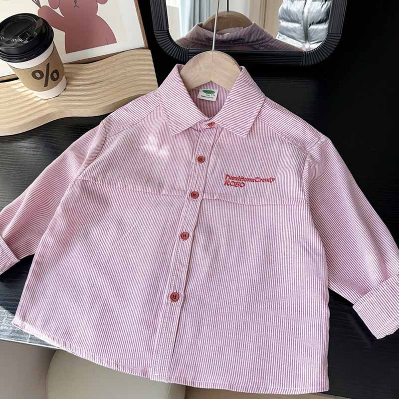 Kids Toddler Boys Girls Casual Versatile Long Sleeve Lapel Shirt