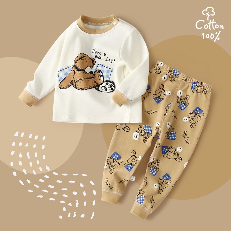 Kids Toddler Boys Girls Spring Autumn Casual Cute Cartoon Print Long Sleeve T-Shirt Trousers Sets
