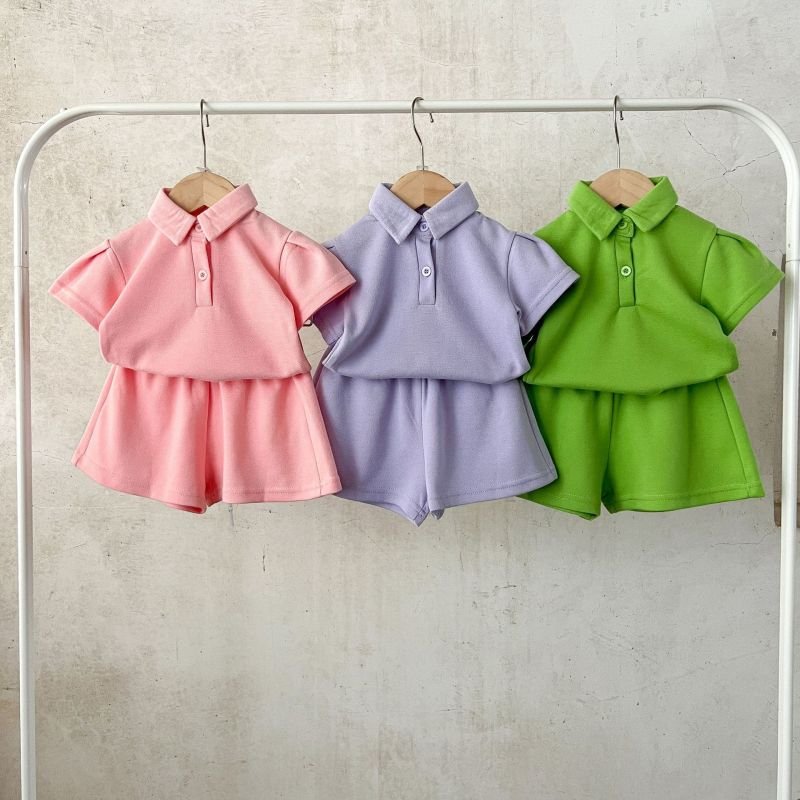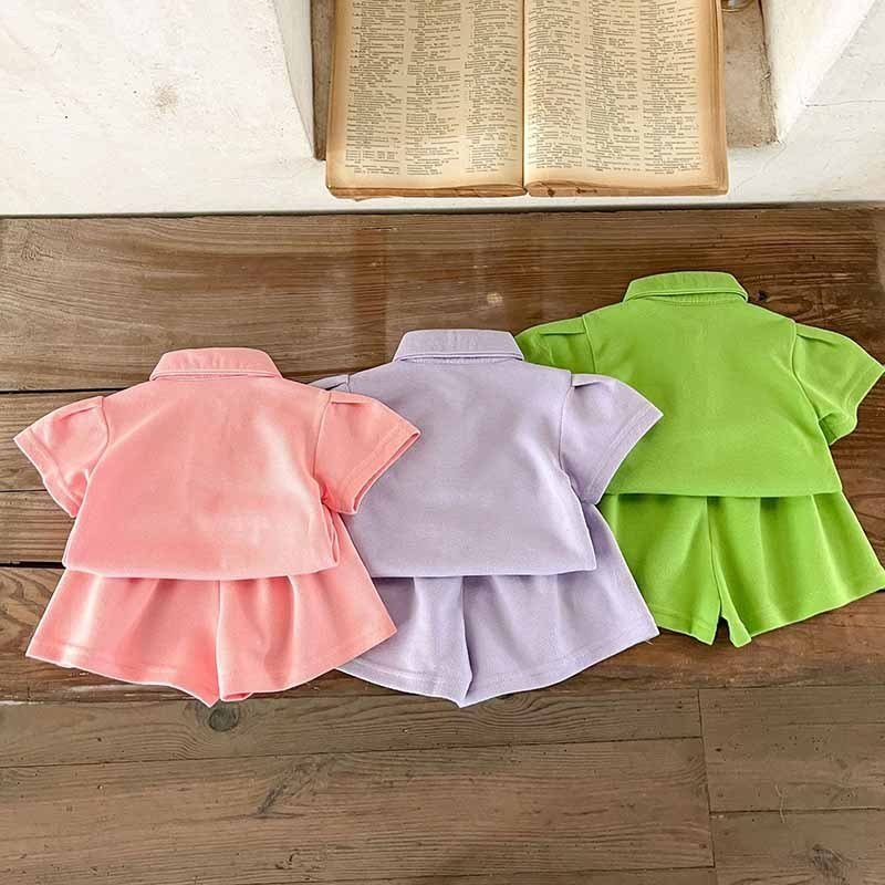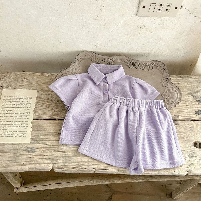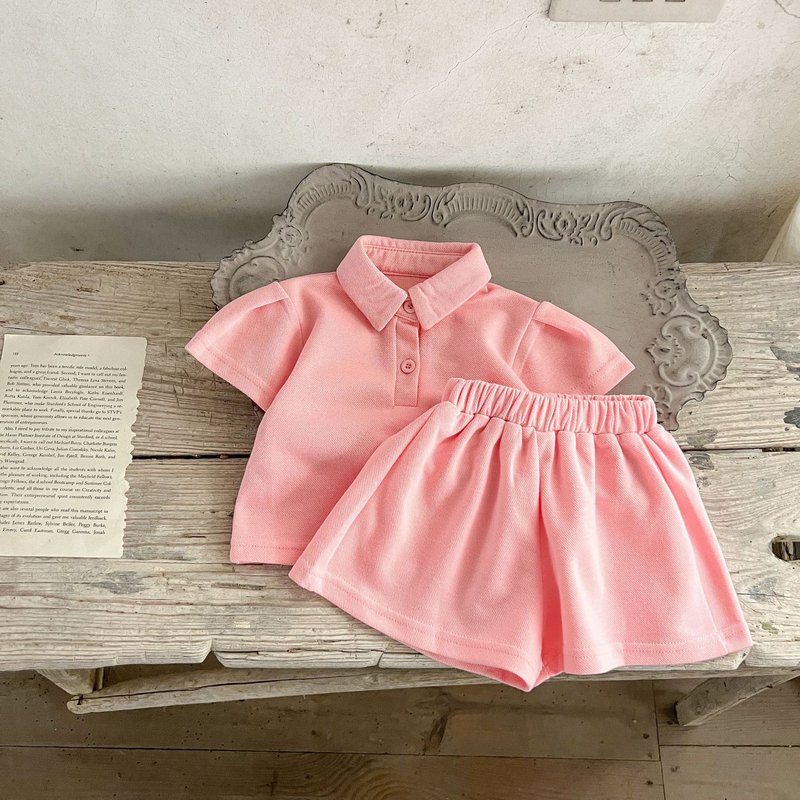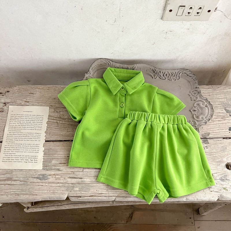 Kids Toddler Boys Girls Summer Casual Cute Solid Color Short Sleeve Lapel Polo Shirt Shorts Set