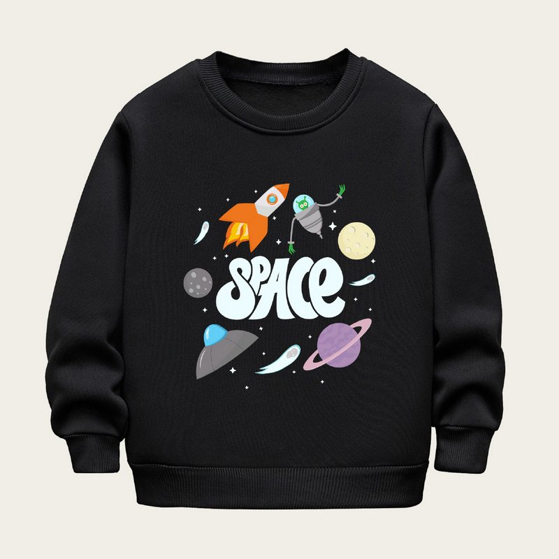 Kids Toddler Boys Girls Winter Casual Cute Cartoon Print Alphabet Fleece Luminous Long Sleeve Sweatshirts