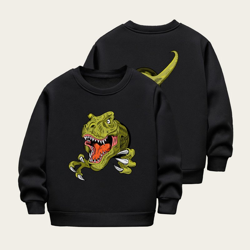 Kids Toddler Boys Girls Winter Casual Cute Dinosaur Print Fleece Long Sleeve Sweatshirts