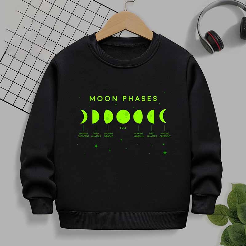 Kids Toddler Boys Girls Winter Casual Cute Moon Print Fleece Luminous Long Sleeve Sweatshirts
