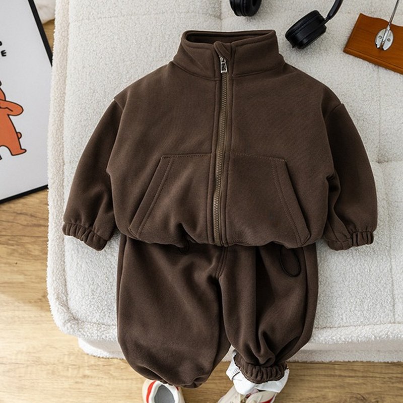 Kids Toddler Boys Girls Winter Casual Cute Solid Color Fleece Long Sleeve Sweatshirts Trousers Set
